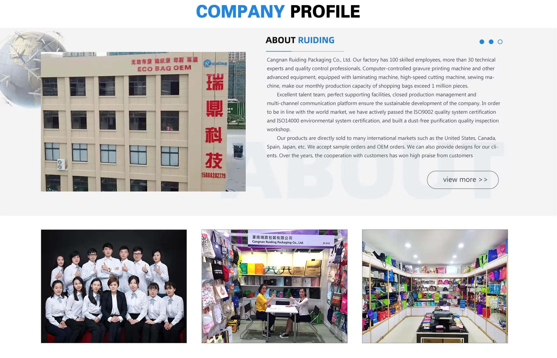 Sản Phẩm chính: Không dệt túi, PP dệt túi, túi bông, túi polyester, đay Túi